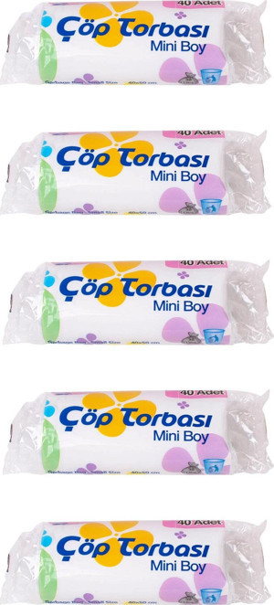 Beyaz Mini Küçük Boy 40x50 Cm. 30 Litre Çöp Torbası Poşeti - 40 Adetlik 5 Rulo