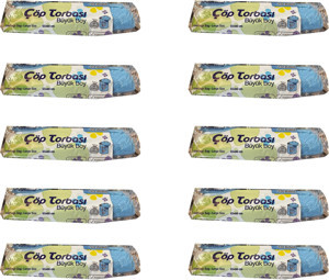 Mavi Büyük Boy Battal 65x80 Cm. 30 Litre Çöp Torbası Poşeti - 10 Adetlik 10 Rulo