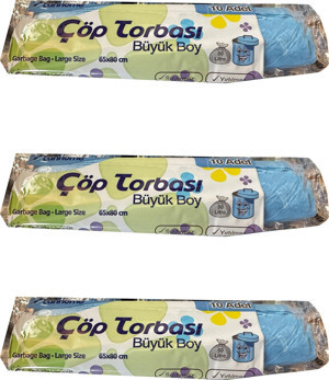 Mavi Büyük Boy Battal 65x80 Cm. 30 Litre Çöp Torbası Poşeti - 10 Adetlik 3 Rulo