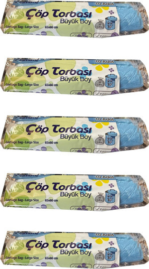 Mavi Büyük Boy Battal 65x80 Cm. 30 Litre Çöp Torbası Poşeti - 10 Adetlik 5 Rulo