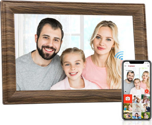 10.1 WiFi Dijital Resim Çerçevesi, IPS Dokunmatik Ekran, Koyu Ahşap