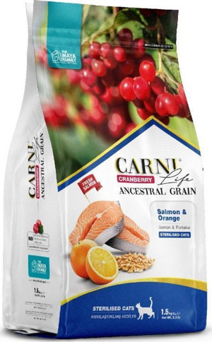 Kızılcık Somonlu ve Portakallı Kısırlaştırılmış Kedi Maması 1.5 Kg