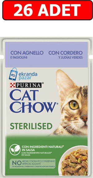 Cat Chow Sterilised Kuzu Etli Ve Yeşil Fasulyeli Kısırlaştırılmış Kedi Yaş Maması 85gr 26 Adet Pouch