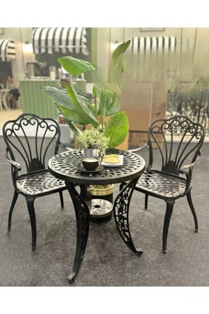 Ferforje Görünümlü Masa Ve Sandalye, Dış Mekanda Kullanılabilir 3 Kişilik Plastik Siyah Masa Takımı