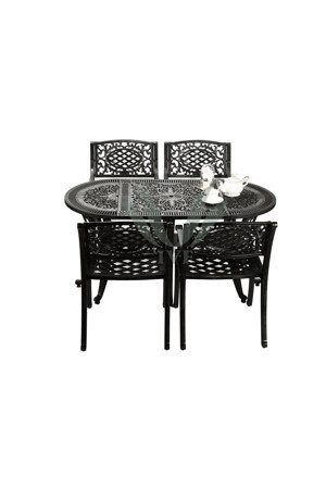 Ferforje Görünümlü Masa Ve Sandalye, Dış Mekanda Kullanılabilir 4 Kişilik Plastik Siyah Masa Takımı