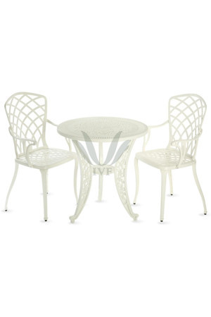Ferforje Görünümlü Masa Sandalye, Dış Mekanda Kullanılabilir 2 Kişilik Plastik Beyaz Masa Takımı