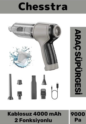 7 Başlıklı Şarjlı Kablosuz 2 Fonksiyonlu 4000 mAh Vakumlu El Süpürgesi Üflemeli Araç Oto Süpürgesi