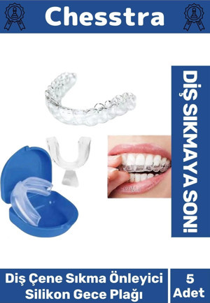 Kutulu Diş Çene Sıkma Gıcırdatma Gece Plağı Koruyucu Önleyici Dişlik Uyku Silikon Aparatı 5 Adet