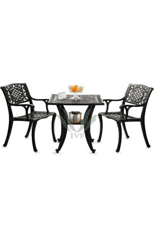 Ferforje Görünümlü Masa Ve Sandalye, Dış Mekanda Kullanılabilir 2 Kişilik Plastik Siyah Masa Takımı