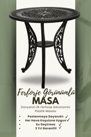 Ferforje Görünümlü Bahçe Masası, Dış Mekan Için Uygun, 2 Yıl Garantili, Siyah Plastik Masa