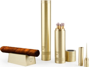Coho Box Brazen Pirinç Puro Kapsülü & Kibritlik & Puro İğne Seti
