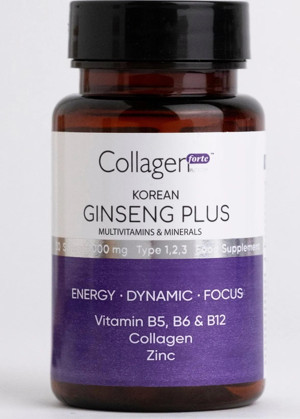 Kırmızı Kore Ginseng Plus, Hidrolize Kolajen, Vitamin B5-B6-B12 & Çinko, 1000mg Softjel Kapsül