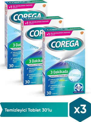 Corega Protez Temizleyici Naneli 30 Tablet 3'lü Paket