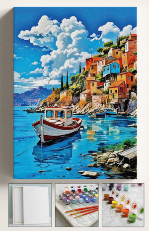 Sayılarla Boyama Hobi Seti Çerçeveli Numaralı Tuval Fırça Boya Kasnaklı Balıkçı Teknesi 40X50 Cm