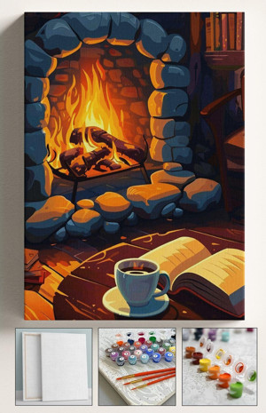 Sayılarla Boyama Çerçeveli Hobi Seti Numaralı Tuval Fırça Boya Dahil Kasnaklı Kahve Ve Ateş 40X50 Cm