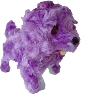 Lila Renk Kuyruk Sallayan Havlayan Işıklı Sesli Yürüyen Peluş Köpek -- Pil Hediyeli --