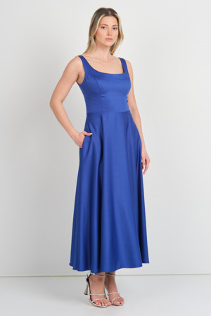 Kadın Askılı Kloş Saten Kumaş Maxi Abiye Elbise 1795 Saks