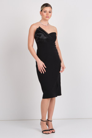 Kadın Kol Detaylı Straplez Midi Abiye Elbise 1816 Siyah