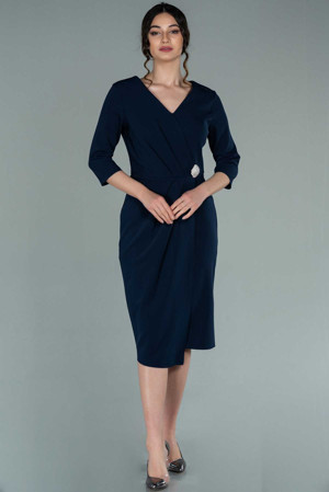 Kadın Kapri Kol Midi Abiye Elbise 5271234 Lacivert