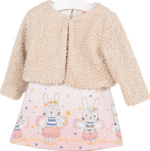 BupperKids Kız Bebek Sihirli Tavşan Desenli Bebek Yelekli Elbise Takım