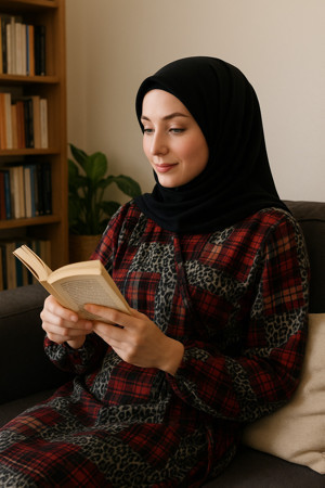 İki Parça Etekli Şal Desenli Başörtülü Kadın Namaz Elbisesi