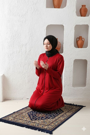 Tek Parça Boydan Giymeli Başörtülü Kadın Namaz Elbisesi Kırmızı