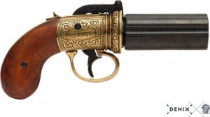 -6 Varil Pepper-box Revolver, Ingiltere 1840-made In Spain- Koleksiyon Serisi