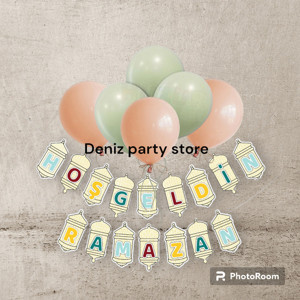 Krem Hoşgeldin Ramazan süs yazı 3 Küf yeşili 3 Somon balon