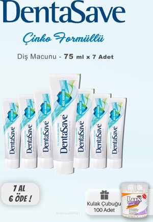 Dentasave Denta Save Diş Macunu 7 AL 6 ÖDE Çinko Formüllü 75 ml ve Kulak Çubuğu