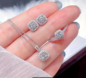 Gümüş Kaplama Işıltılı Kolye Seti