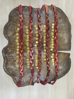 Karadeniz 10'Lu Keşan Örgülü Liralı Bandana Fular (Kırmızı, Bordo-Mavi)