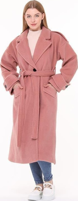 kadın kuşaklı oversize yün kaşe kaban DPPLTN02 - Gül Kurusu