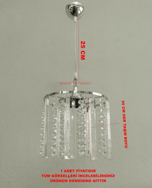 Saçak Kristal Taşlı KROM Yuvarlak Tekli Avize E-27 Duylu