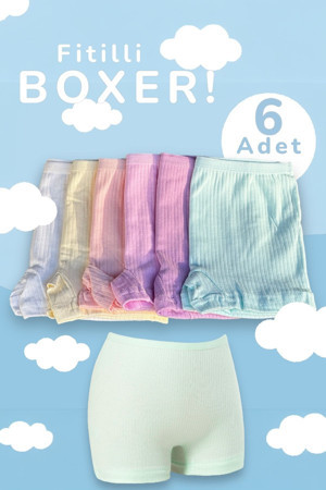 6'Lı Fitilli Kız Cocuk Pastel Renk Pamuklu Boxer Pastel 5-6 Yaş