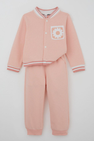 Kız Çocuk Eşofman Takımı Çiçekli Örgü Cep Detaylı Çıtçıtlı 2-5 Yaş, Somon