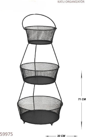 3 Katlı Siyah Renk Patates Soğanlık Ve Meyve Sebze Sepeti