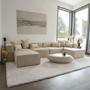 Dream Garden Angelo 4 Modül Kırık Beyaz Keten Köşe Koltuk Takımı 2 Puf - Image 1