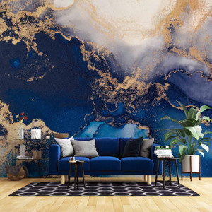 3 Boyutlu Lacivert Beyaz Mermer Desenli Duvar Kağıdı