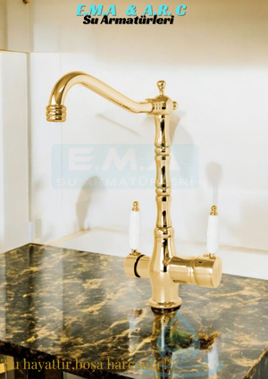 Arıtmalı Rustik Mutfak Evye Bataryası Gold