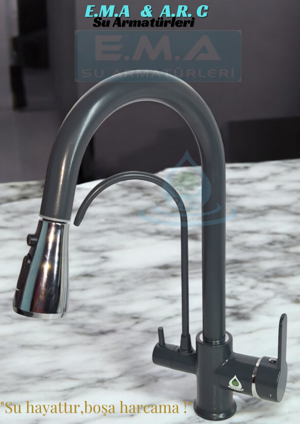 Arıtmalı Spiralli Mutfak Evye Bataryası Antrasit Krom