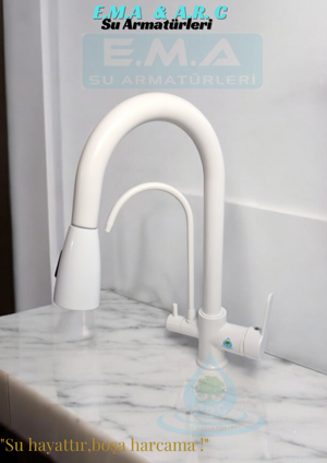 Arıtmalı Rustik Mutfak Evye Bataryası Beyaz-Krom