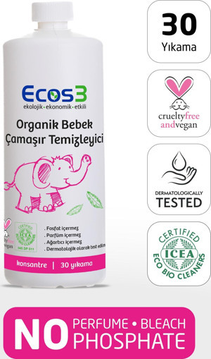 Bebek Çamaşır Deterjanı, Organik & Vegan Sertifikalı, Ekolojik, Kokusuz, Konsantre 30 Yıkama, 1050ml