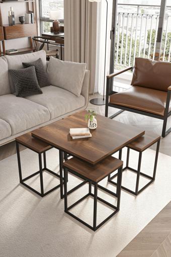 Üsküp Orta Sehpa Takımı Siyah Metal - Atlantik Çam Tabla