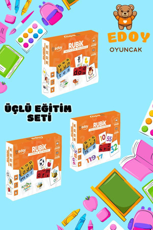 Montessori Eğitici Üçlü Oyun Seti-Rubik Matematik-Türkçe-İngilizce Bulmaca Kutu Oyunu Eğitim Seti
