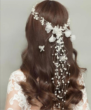 Full İncili Tasarım Beyaz Nişan,Düğün ,Dış Çekim ,Gelin Tacı Saç Aksesuarı