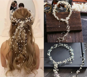 Kristal Taşlı Incili Gelin Tacı Dağınık Serpme Saç Aksesuarı