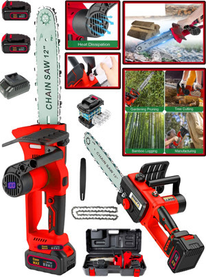 RED 32 CM Yağ Pompalı Yeni Nesil Kömürsüz Motor Çift Akü 10 Pilli Dal Budama Testere Makinesı