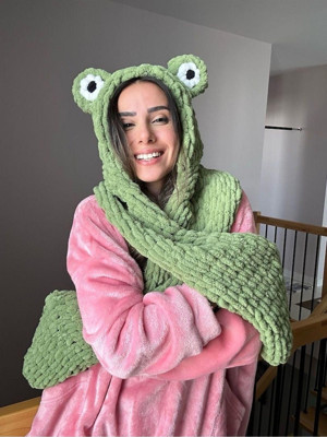 Alize Puffy Balaklava - Yeşil Kurbağa Balaklava Atkı-Bere