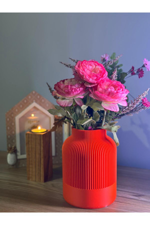 Turuncu Dekoratif 3D Baskı Vazo - Modern Tasarım