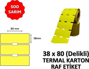 Termal Karton Raf Etiketi 38mm x 80mm DELİKLİ SARI - 500 Adet